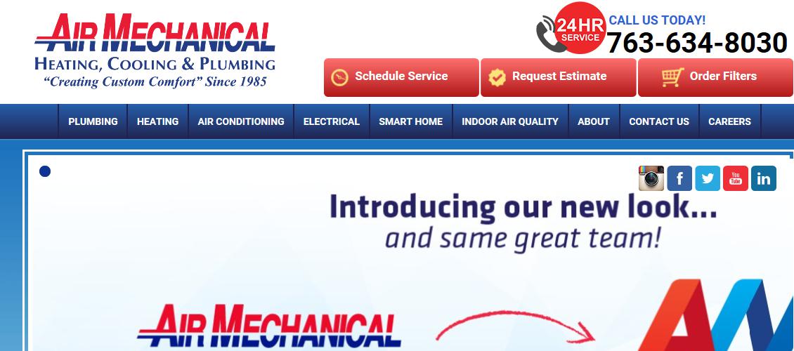 Our Reputation: Air Mechanical, Inc. is a leading Minnesota Heating, Cooling & Plumbing contractor celebrating 30 years of service this year! We have specialized in residential service and installation of all your heating, cooling and plumbing needs, including many different indoor air quality products. We offer a 100% satisfaction guarantee on everything we do! We also offer free estimates on equipment installations and Same Day Emergency Service 365 Days a year with live operators. We are held to a high standard of service than competitions. We offer integrity in the business and the highest customer service standards. Our technicians and installers are among the best the industry has to offer; Almost all of our support technicians have formal school and levels in their commerce, and over 50 percent of our technicians and contractors have to be NATE Certified; the highest standard in our industry. Throughout surrounding Twins Cities Metro area, air Mechanical, Inc offers plumbing, heating system, air conditioning, and air quality solutions. If you require professional plumbing service around Andover, MN, regardless of what it is, you can trust our professional and trained plumbers to handle it. Like our heating solutions, our ac providers are top-notch. Call Air Mechanical, Inc to find out that we offer for geothermal heating and cooling systems around Andover, MN, including design and drilling. Our indoor air quality experts provide duct cleaning and duct repair, installation of air cleaners, air filters, and air heaters, solutions for humidifiers and dehumidifiers, plus more.