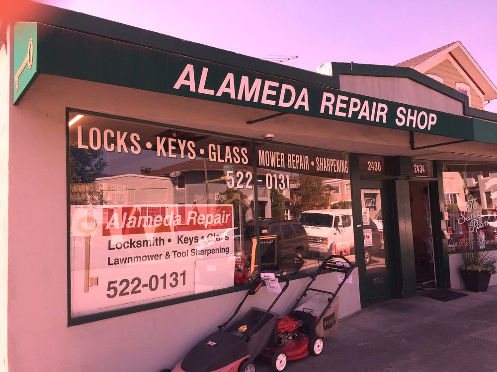 Weird place. I removed and brought a lawnmower blade into Alameda Repair Shop once to have it sharpened. They charged me $18.00 to muster, which appeared high. I went home and found I could purchase a brand new mower for $16.00 from Amazon; (2 blades for $28). Shipping saves me two trips to the mechanic. I went to have 2 padlock keys. Charged me $5.00; that was high compared to Paganos ($4.00) or Home Depot ($3.00). More offputting was the clerk at the lock store was wearing a large video camera onto his shirt, and explained he was video recording me and every client that comes to the store"to keep everybody on their best behaviour". Seemed paranoid. Will probably visit Encinal or Paganos Hardware time I want a secret!