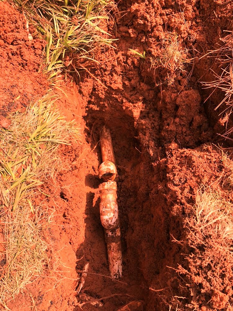 He explained he would have a look and let me know when he discovered something. I watched him saw he was quite thorough and work from my window. He replaced of the straps and the pipe that was causing the issues. He said that my builder used cheap parts(average ) and left enormous stones buried on my lineup so he replaced the whole part because he does not enjoy working behind anybody and removed the stones. Then he covered everything up. Leaving my lawn undisturbed in look. Yay!