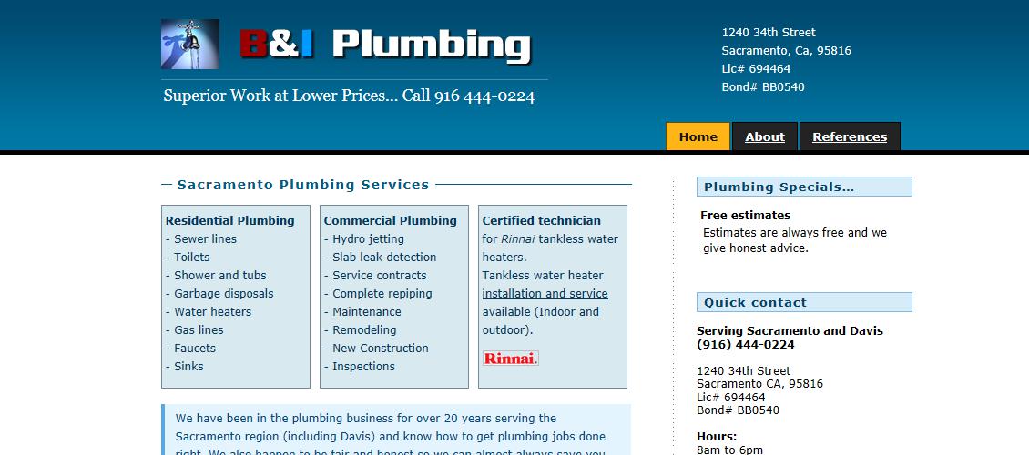 B&I plumbing was utilized a few times by us . B&I was suggested by me when my friend asked to fix her garbage disposal. Even though it was a Saturday, a couple hours after I got a text from my friend, I'd like to know the B&I had come over and discovered that her garbage disposal was just trapped, used a wrench to fix it and didn't charge her anything. Thank you for taking such good care of my buddy!