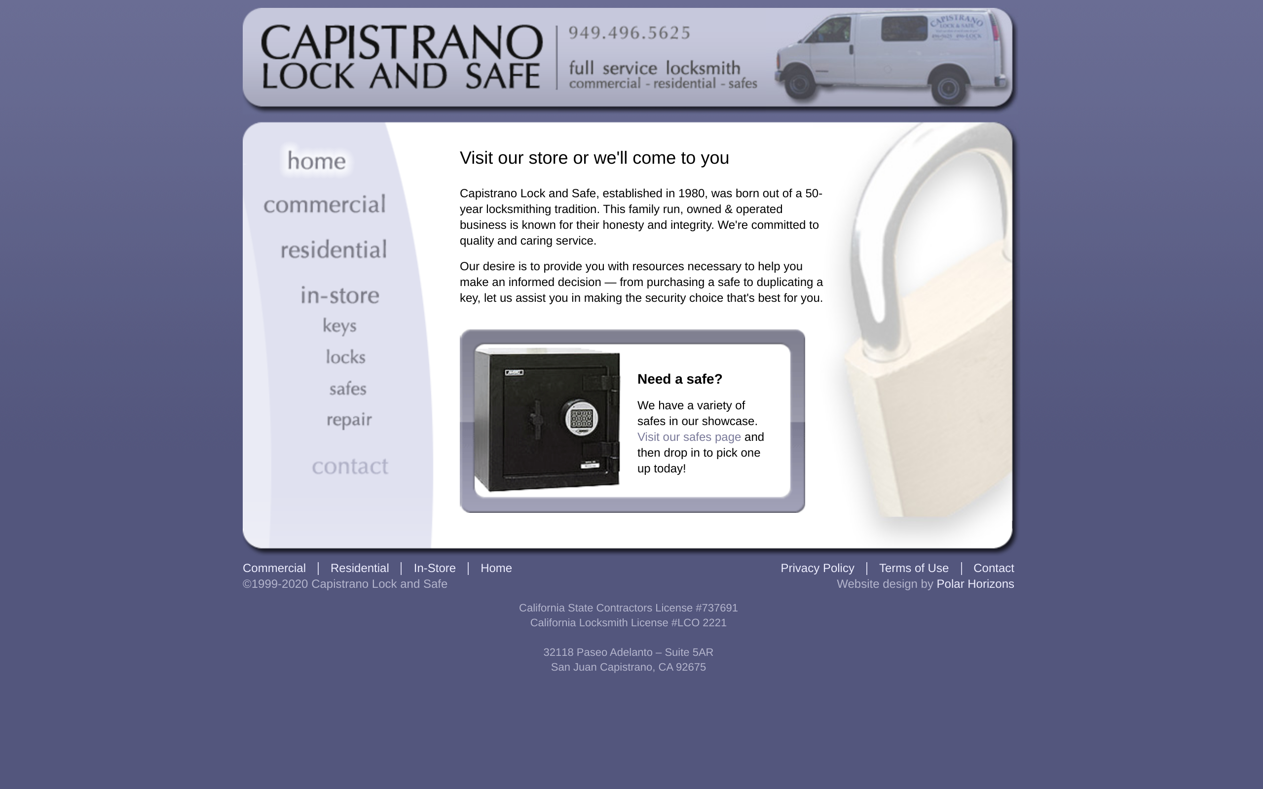Safe and capistrano Lock was created in 1980 and born out of a locksmith tradition. This family owned and operated company is known for their honesty and integrity. We're committed to caring and quality service. Let us help you in making the security choice that is ideal for you. Call us today to find out more!