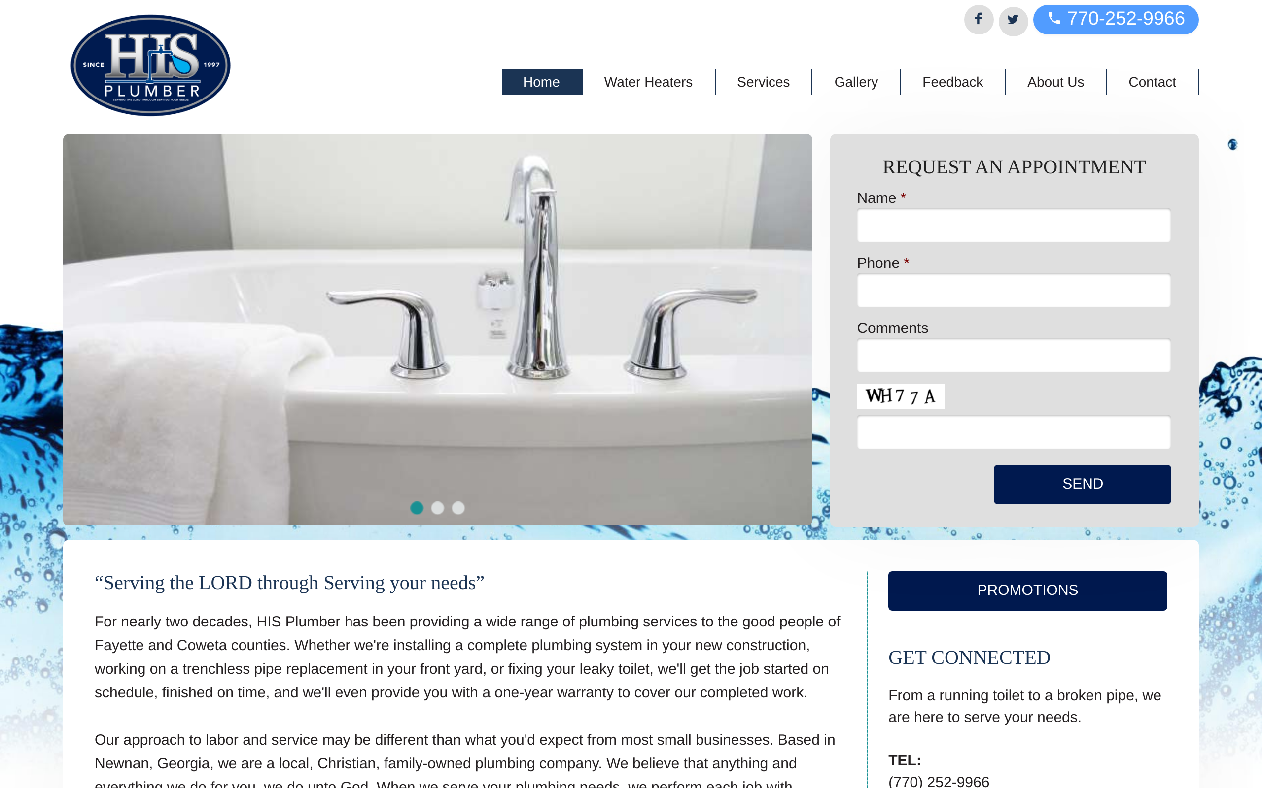 For almost two years, HIS Plumber has been providing a wide assortment of plumbing services to the excellent folks of Fayette and Coweta counties. Whether we're installing a complete plumbing system on your new building, working with a trenchless pipe replacement in your front yard, or fixing your leaky toilet, we will get the job started on schedule, finished on time, and we'll even supply you with a one-year warranty to cover our completed work. According to Newnan, Georgia, we are a Christian, family-owned plumbing company. We perform each task with reverence for your job, esteem for your tastes, attention to detail, a grateful heart, and a determination to offer up our job, with joy and heartily when we serve your plumbing requirements. Toilet repair and installation Faucet repair and installation Leaking analyses Installation or repair of water heaters Sewage ejectors and sump pumps Water maintenance Remodels and additions Entire house re-pipes Trenchless pipe replacement together with gas, electricity, and solid structure, pipes a part of the basic infrastructure of each home. You need to worry about anything more serious than a occasional faucet leak or clogged sink, particularly in the event that you have a newer home, if pipes is installed properly, with the highest quality materials. So whether you have a home that is brand new or vintage, you will want to make certain that you're working with a pipes expert. Additionally, it ensures that our workers have earned the right to use the Plumber company emblem that is HIS, not simply due to skills that are certified and their accredited, but by simply with their commitment to diligent and respectful service. By offering our talents and labor up to the neighborhood in fellowship, as a locally-based Christian pipes business, we operate for HIM. On the Lookout for a plumber in the Newnan, Georgia, area? Put in our competent and ready hands.