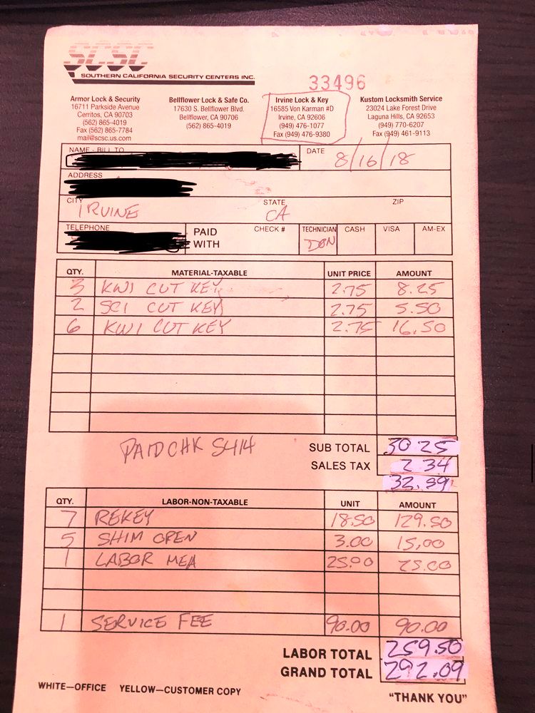 Horrible experience. They came out five months back to get codes, and I don't have keys for two sets of file cabinets.