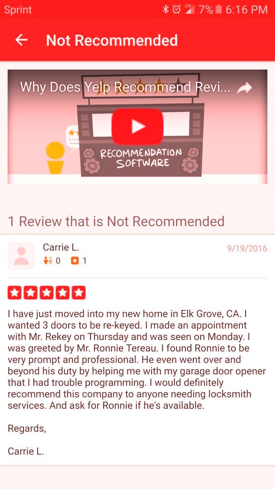 Got my home rekeyd, Mark did an excellent job, very knowledgeable, friendly and very perfesonable. What I liked was the fact he had been ON TIME!.called ahead to tell us he's about the way....Didn't require a great deal of time, understood exactly what he needed todo....Thank that you MARK....OH one more thing, the cost was VERY fair.