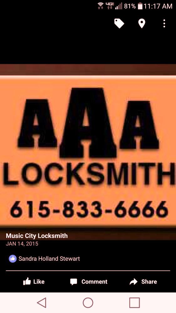 Music City Locksmith provided service! The quote and advice was simple and straightforward to comprehend, they answered all and any questions I had and came on time. They were highly recommended by me for almost any of your locksmith needs!