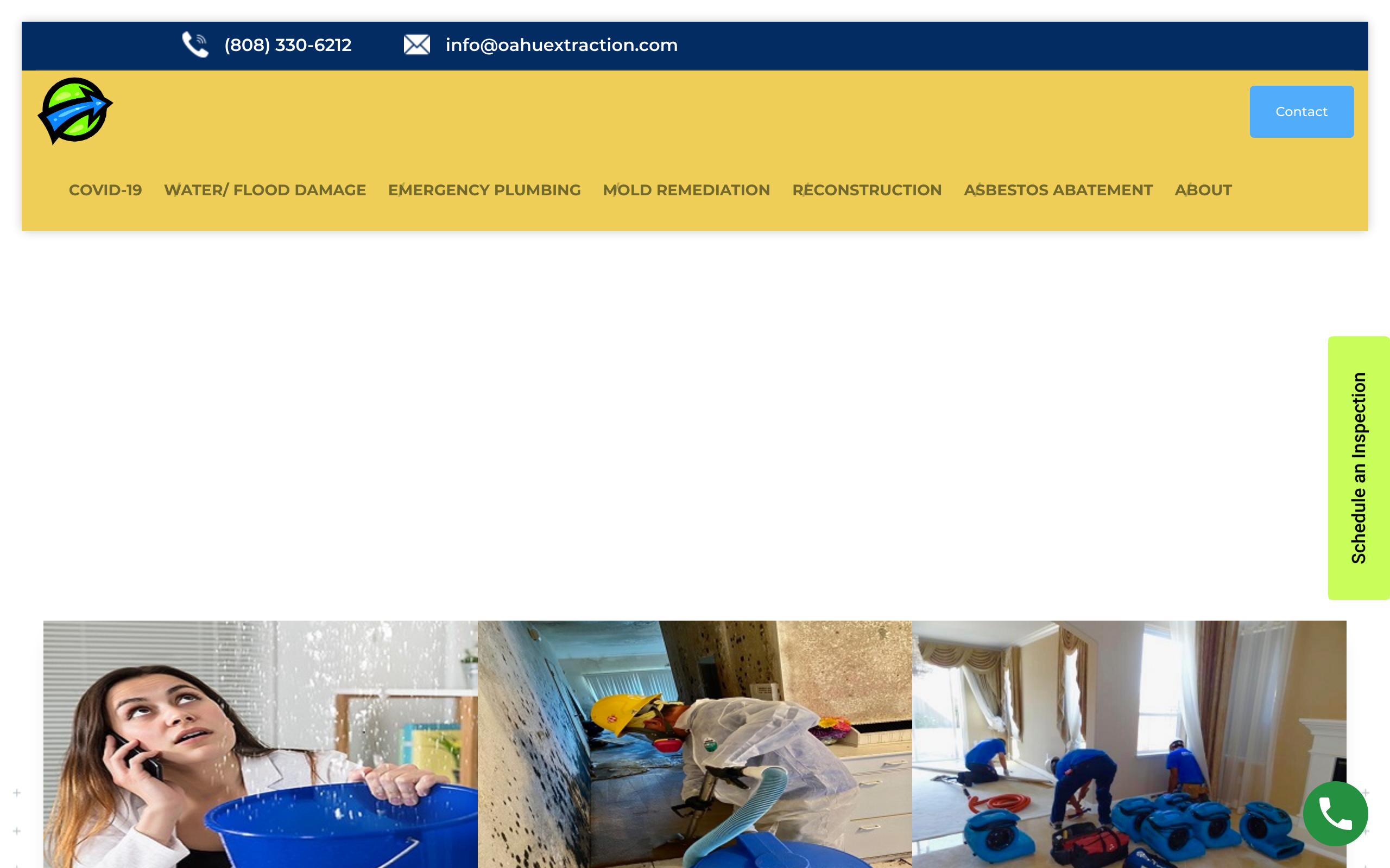 We hired Oahu extraction to remove a block mold from our bathroom ceiling, luckily they called their plumber to obtain the flow... they began the water extraction & drying right after the plumbing was done w the repairs. . They began the drywall repair as soonest their technicians eliminated the equip and ended the drying. . I highly recommended Oahu Extraction ...
