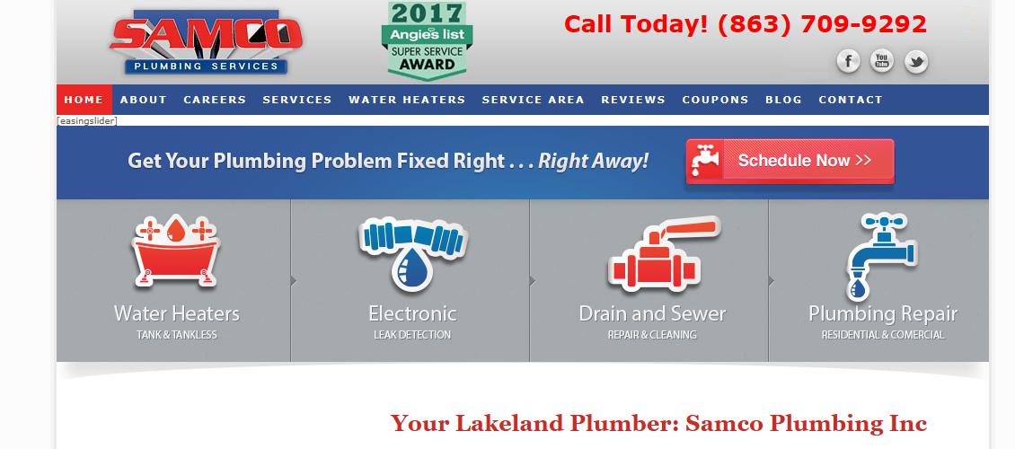 On the lookout for an excellent plumbing contractor at the Lakeland area? Call Samco Plumbing Inc currently. We specialize in the installation, repair and upkeep of all of the plumbing systems of your home and service all makes and models. With Samco Plumbing Inc, you have upfront pricing, 100% warranty on all solutions, on-time service, and access to a team of highly-trained technicians who are individually specialized in an assortment of areas, such as water heaters, drain cleaning, clogged toilets, and much more, together with extensive experience and knowledge in all areas of plumbing. Whatever issue you come across regarding the plumbing system of your home, we've got you covered! 6 Smart Reasons to Phone SAMCO Now Professional TechniciansGet your pipes fixed by neat, highly trained plumbers. We don't"Learn" on your own body; we mend it. Fast, Powerful"Drain Relief"Let's get your drains draining again! They'll go from"Sloppy and slow" to"Clean and fast"! Let's install a water heater to fit your needs. We pinpoint the problem.... FAST!