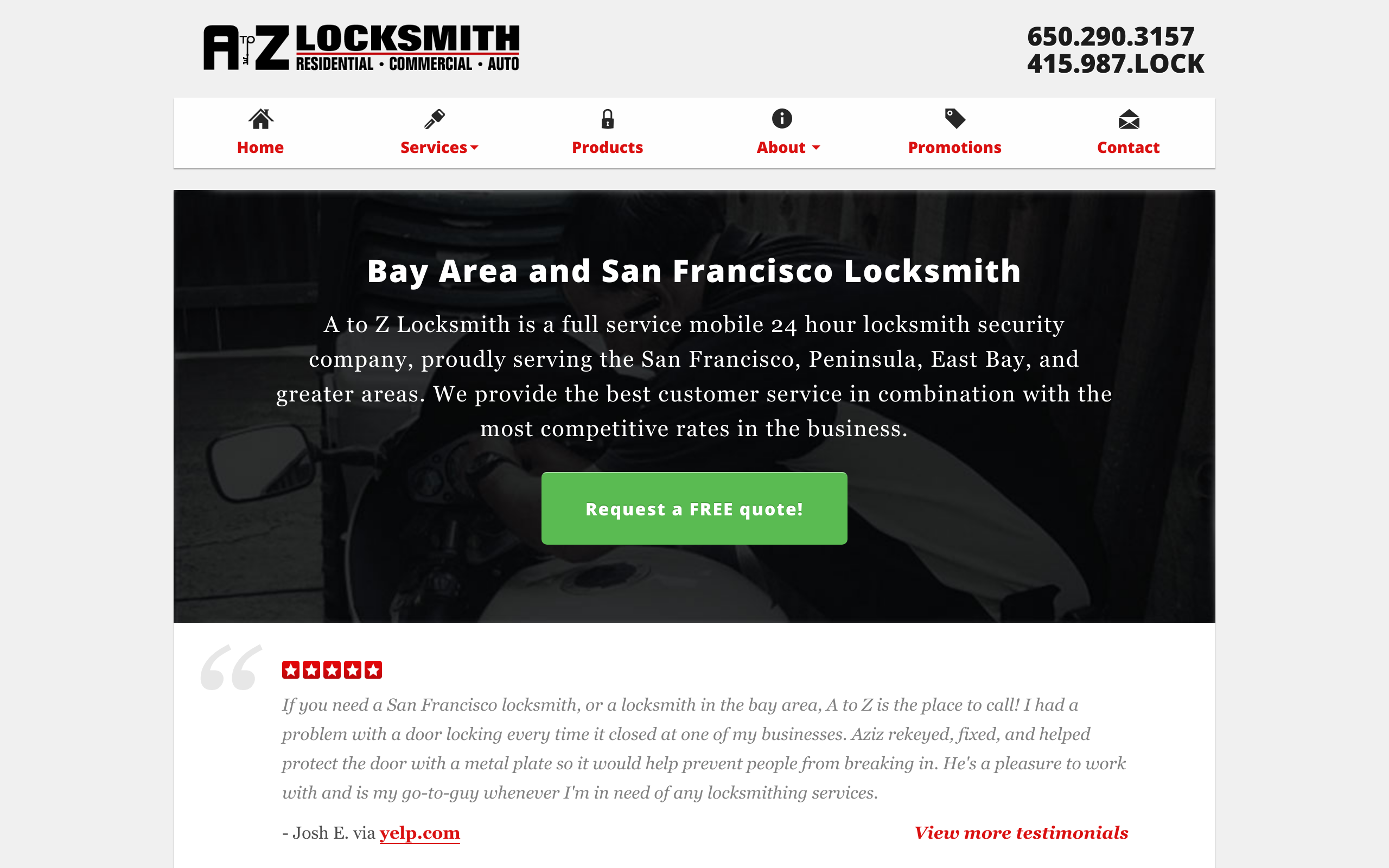 A to Z Locksmith is a complete service locksmith security firm serving the San Francisco, Peninsula, East Bay, and even areas that are greater. We are locally owned and managed, licensed and insured for the security of our customers. We specialize in a wide selection of residential automotive, and commercial locksmithing products and services. A to Z Locksmith is dedicated to providing our customers with top quality professional services at affordable and competitive prices. Contact us ANYTIME to schedule an appointment 24/7 or for a FREE quote.