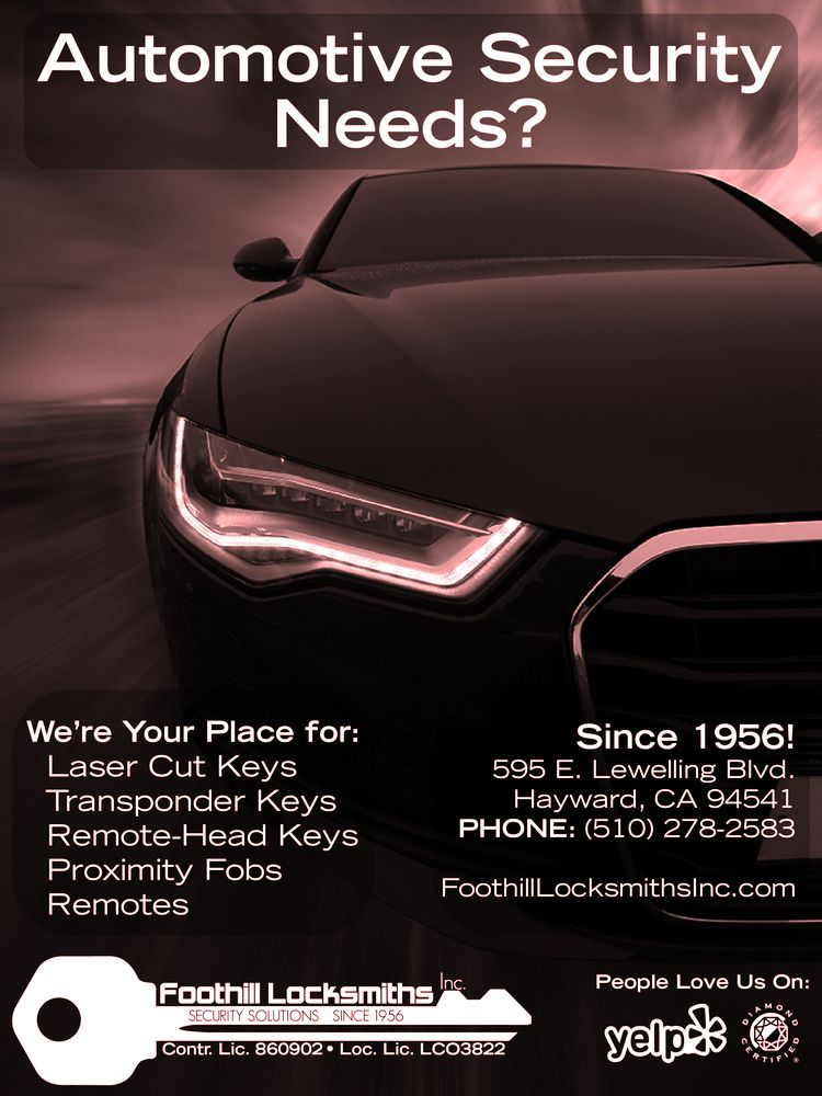 A to Z baby yeeeeeeeeee locksmith at the Bay Area service. Aziz the owner made me two keys to my own 2007 did a Fantastic job repairing my door lock Toyota Camry, thanks